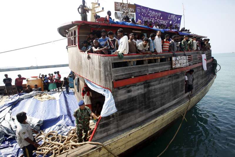 A boat carrying Sri Lankan asylum-seekers in Indonesian waters. Australia has temporarily frozen asylum applications of Sri Lankans and Afghans arriving in Australia by boat.