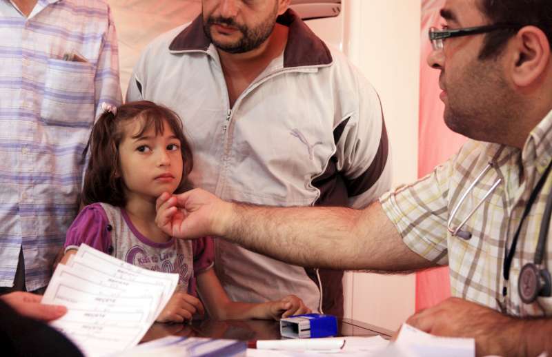A Turkish doctor attends to a Syrian girl at the recently opened Kahramanmaras refugee camp.