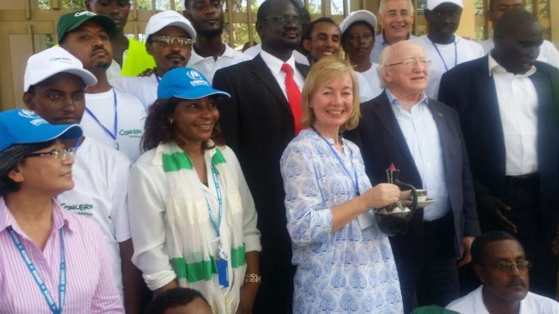 During his tour of Tierkidi, home to almost 50,000 South Sudanese refugees, the Irish president watched malnourished children receive nutritional services under an Irish Aid programme. He told aid workers that Ireland has contributed US$2.6 million to humanitarian operations in the region. Despite its financial problems in recent years, Ireland donated a substantial US$13 million to UNHCR in 2013.