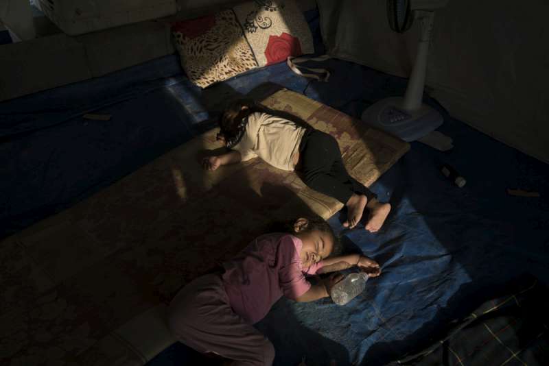Internally displaced Iraqis, mainly from Saladin, sleep in newly set up tents. Families moved into what looks like a new village in late June, 2015.