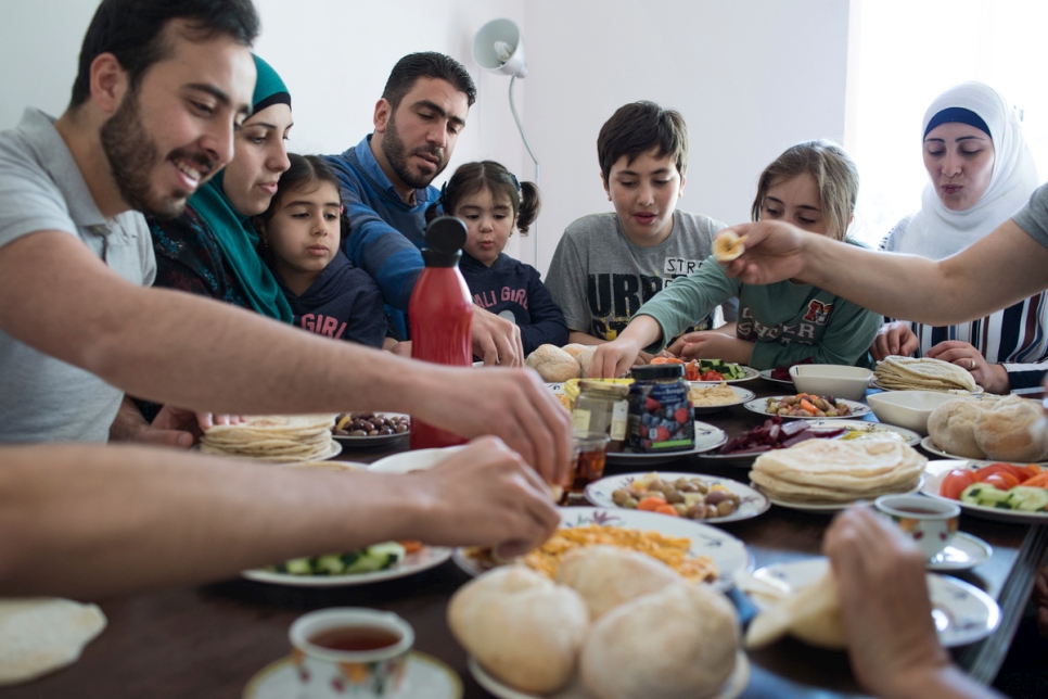 The Dabah family, who fled war in Syria in 2012, eat breakfast at their home in Lisbon, Portugal.