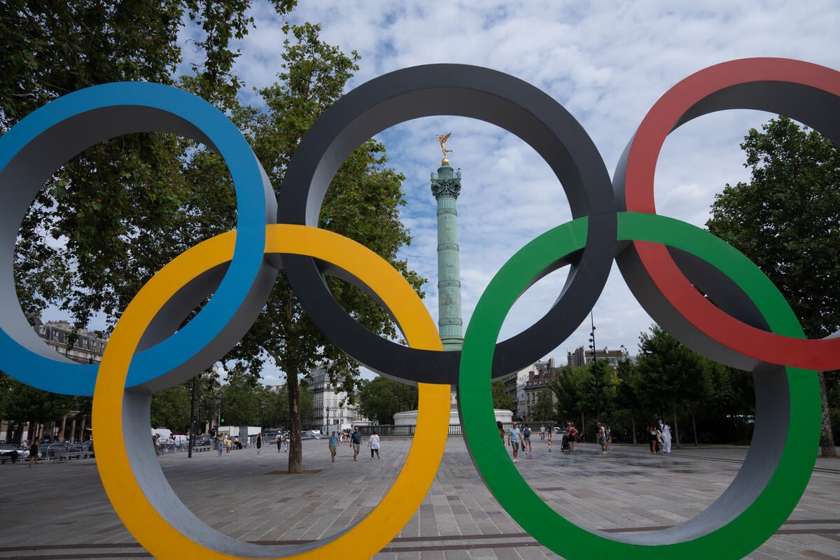 الحلقات الأولمبية في ساحة الباستيل في باريس.