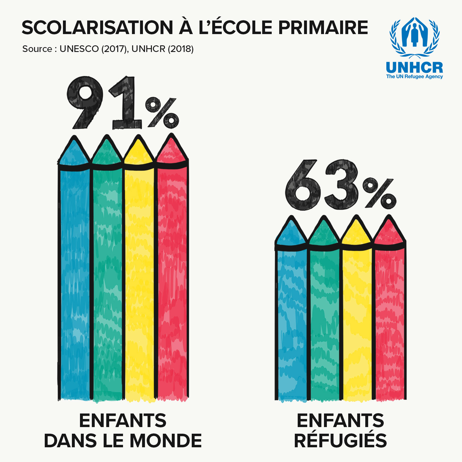 Aujourd’hui, près de 3,7 millions d’enfants réfugiés ne sont pas scolarisés, soit plus de la moitié des 7,1 millions d’enfants réfugiés d’âge scolaire.