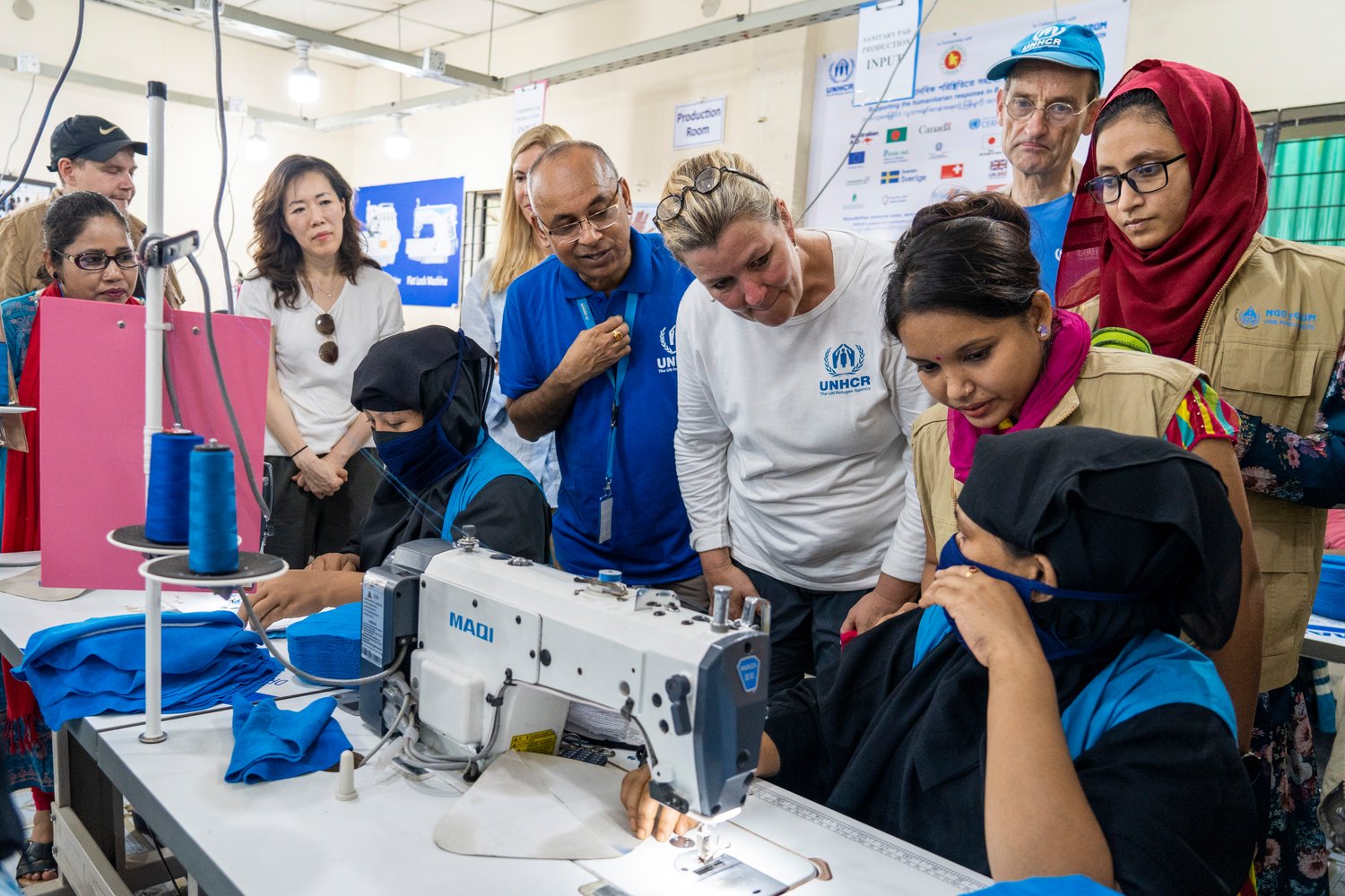 UN Deputy High Commissioner for Refugees Kelly T. Clements talks to Rohingya refugee women at a livelihood and skill development site in one of the camps in Cox's Bazar.