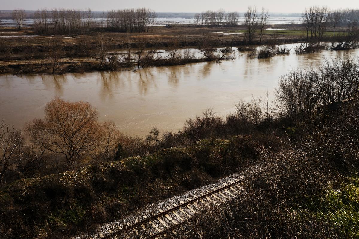 Train tracks alongside the river Evros land crossing from Turkey to Greece where refugees have lost their lives