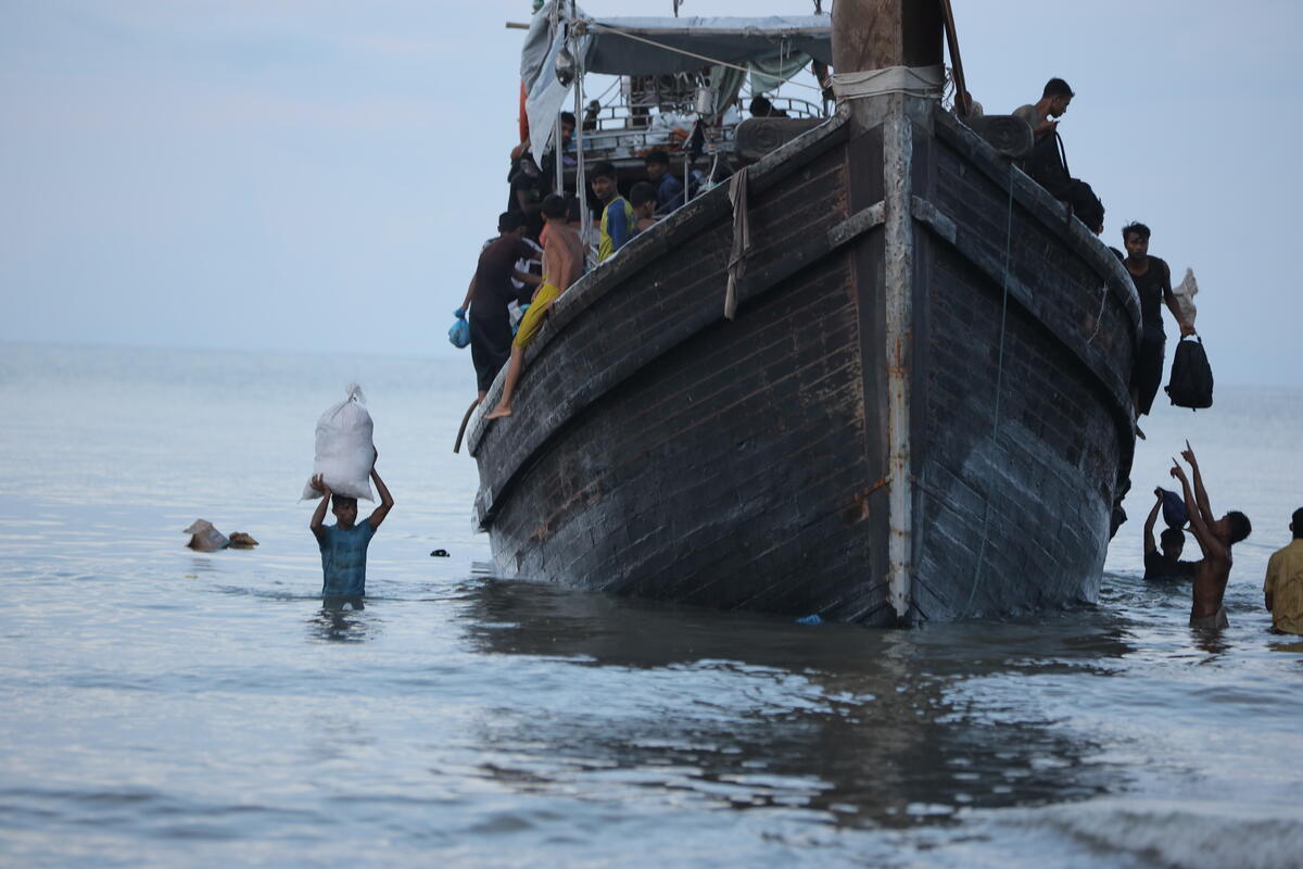 Rohingya refugees arrive in Ulee Madon in Indonesia's Aceh Province in November 2023 after making the dangerous crossing from Bangladesh.