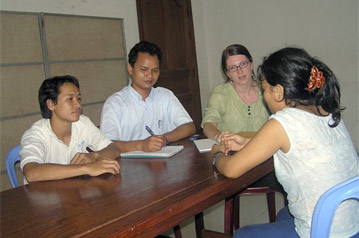 UNHCR staff and interpreters interview an asylum seeker (right) in Phnom Penh. Under new procedures soon to be adopted, the Cambodian government will take over these duties for many applicants.