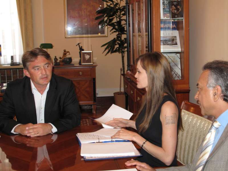 UNHCR Goodwill Ambassador Angelina Jolie meets with Bosnia and Herzegovina Presidency member Željko Komšić to discuss, among other issues, the plight of displaced people in the country.