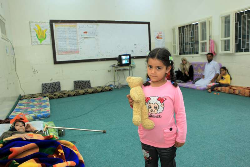 Five-year-old Razan is living in a school in Misrata with her parents, sister and 76-year-old diabetic grandmother. The family's home was destroyed by a missile during the conflict.