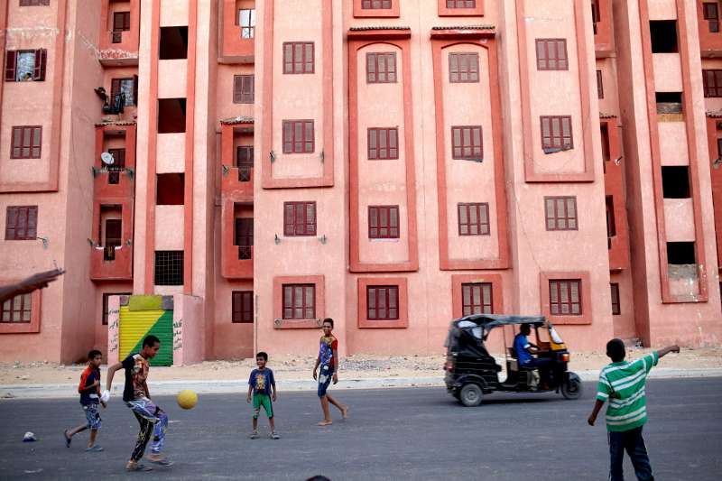 Syrian and Egyptian children play football in an impoverished neighborhood of the 6th of October City outside of Cairo. Egypt had been extremely welcoming to Syrians fleeing the war in their homeland.