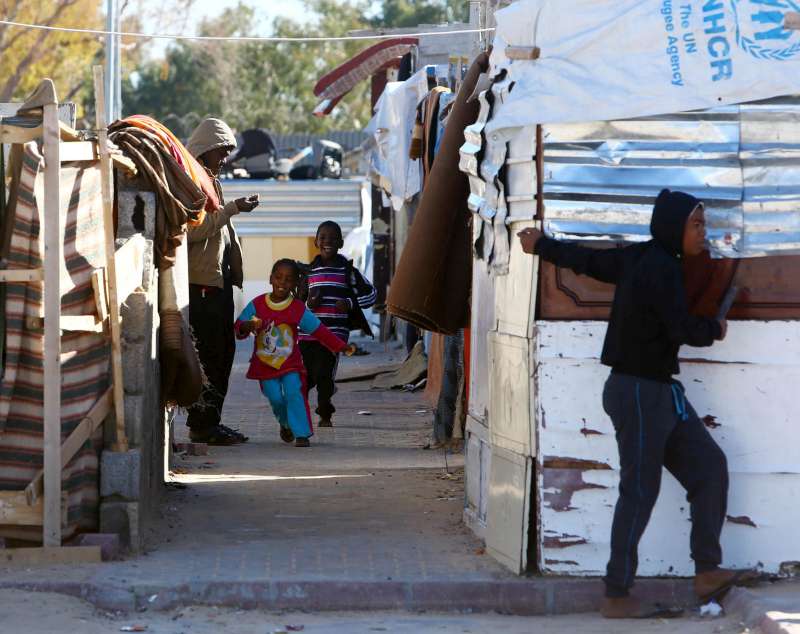 Children play in an alley at a refugee camp near the Libyan capital Tripoli that now hosts internally displaced people from the town of Tawargha, south of Misrata.