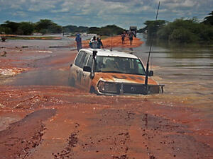 Dadaab, un complexe de trois camps qui accueille 160 000 réfugiés - a été touché par les pluies torrentielles qui ont inondé certains tronçons de la route de Garissa à Dadaab, la seule route permettant de se rendre dans ce camp isolé loin de la capitale kenyane, Nairobi. Des transports aériens sont maintenant le seul moyen utilisable pour transporter des secours dans ces camps où plus de 100 000 réfugiés ont été gravement affectés par les inondations. Aucune précipitation n'a eu lieu ces trois derniers jours et les inondations semblent avoir entamé leur décrue. Nous avons poursuivi le transfert des personnes les plus touchées depuis le camp d'Ifo vers des zones plus élevées dans le camp de Hagadera, à 20 kilomètres de là. Jusqu'à présent, 4 500 réfugiés ont été transférés.
