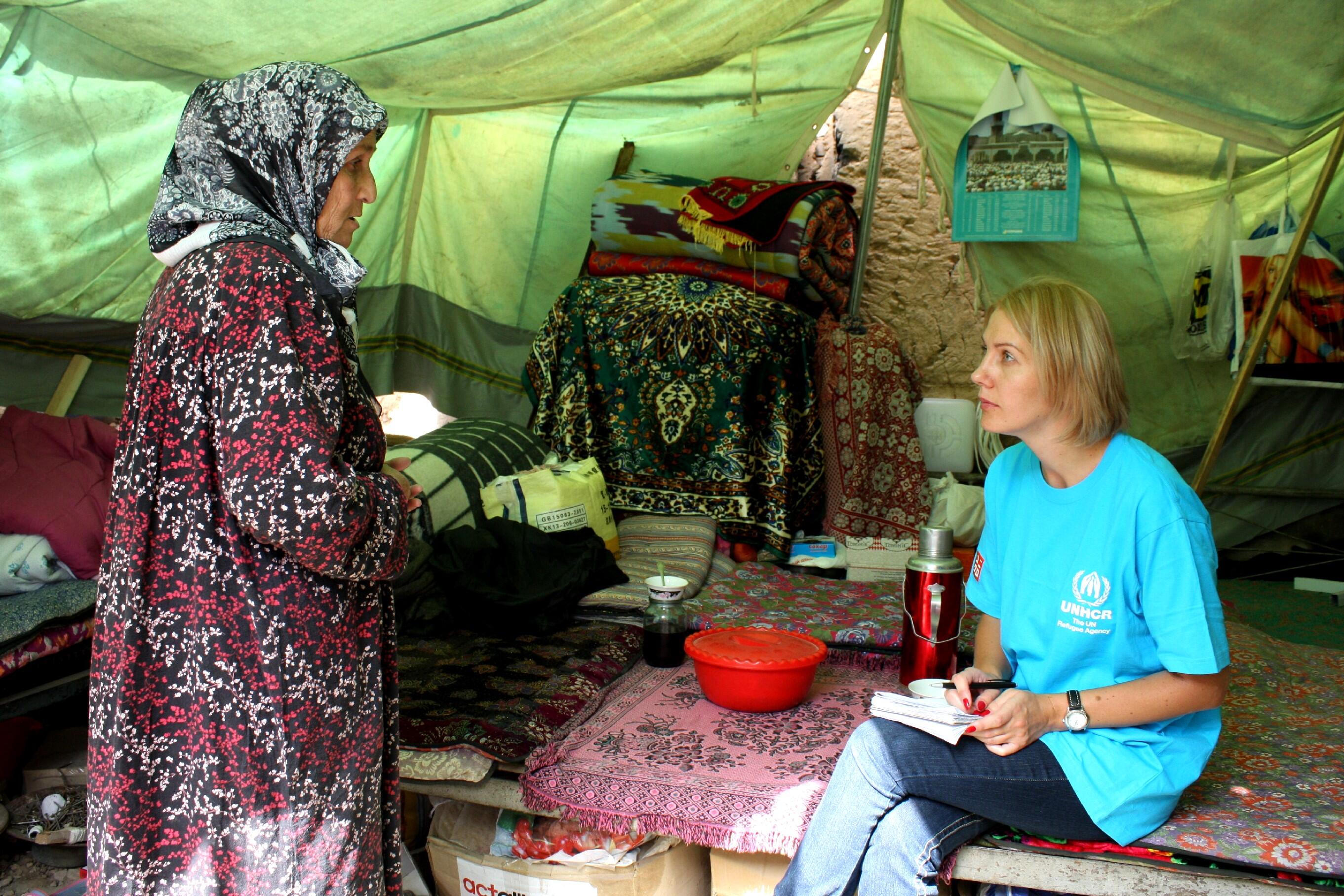En montrant sa maison endommagée aux visiteurs du HCR, les mauvais souvenirs ont refait surface. Gulmira était en larmes lorsqu'elle a montré le sous-sol où elle s'était cachée avec ses petits-enfants lorsque la maison a été attaquée. Un homme lui a pointé un revolver au cou, mais elle était préoccupée davantage par les enfants pendant cette épreuve éclair.