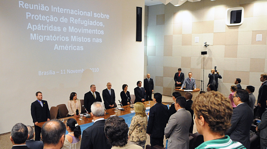 Les participants de la réunion internationale organisée à Brasilia sur la protection des réfugiés, l'apatridie et les mouvements migratoires mixtes.