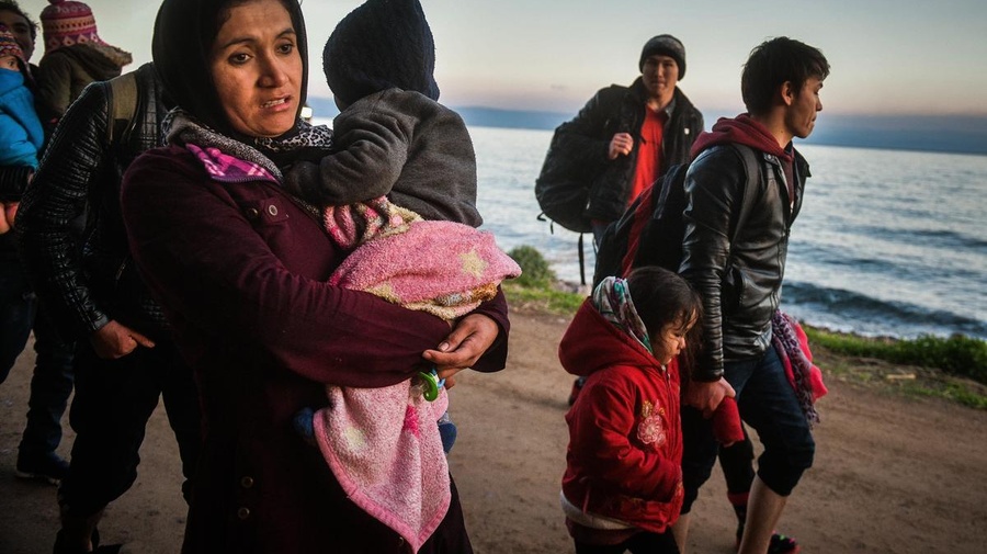 Des réfugiés arrivent sur l'île de Lesbos, en Grèce, le 2 mars 2020.