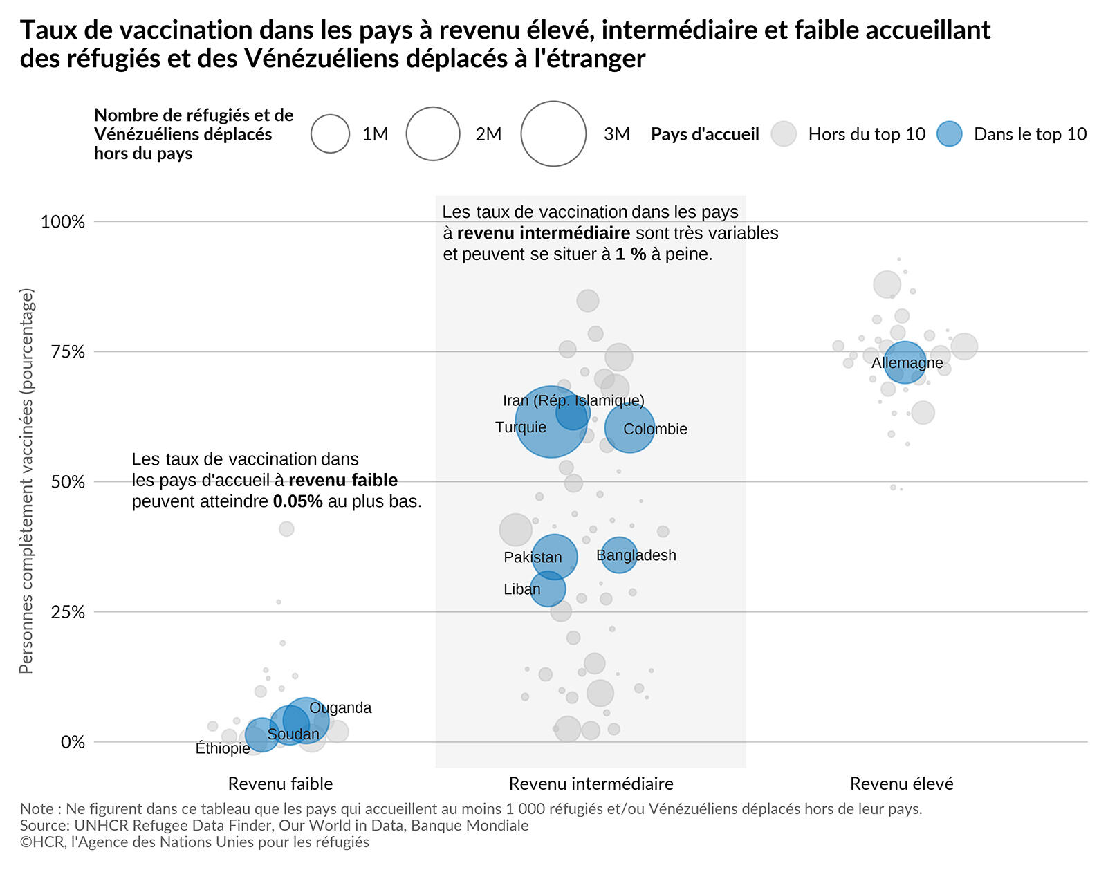 Plus de la moitié des réfugiés dans le monde sont accueillis dans dix pays seulement, dont neuf sont des pays à revenu faible ou intermédiaire.