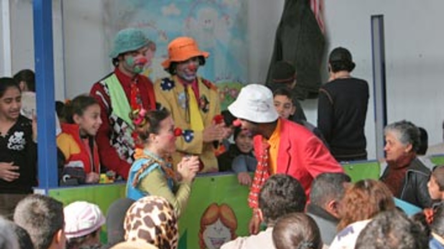 L'UNHCR a demandé au groupe international indépendant, Clowns Sans Frontières, de passer en revue le premier spectacle, qui visait à informer les parents et les enfants du droit d'aller à l'école dont bénéficient tous les enfants iraquiens. Clowns Sans Frontières est revenu en novembre afin de poursuivre la formation des clowns, et de soutenir l'utilisation de la thérapie par le rire, par le personnel de l'UNHCR, du Croissant-Rouge arabe syrien et de l'UNICEF.