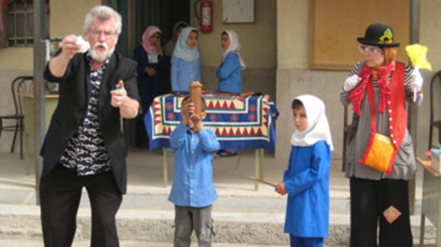 Le duo composant les Magiciens sans Frontières, Tom Verner et sa femme Janet Fredericks, se sont récemment rendus dans des camps de réfugiés en Iran pour divertir et éduquer plus de 2 000 enfants iraquiens et afghans.