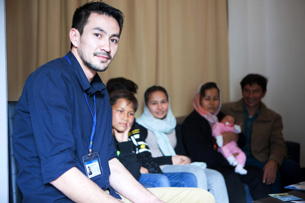 Un grand jeune homme au visage jovial est sur place pour accueillir cette famille composée de sept personnes. Il s’appelle Ali-Sher Kashimi et est âgé de 22 ans. Il fait partie de la communauté des Hazaras en Afghanistan, tout comme les demandeurs d’asile qu’il aide aujourd’hui.