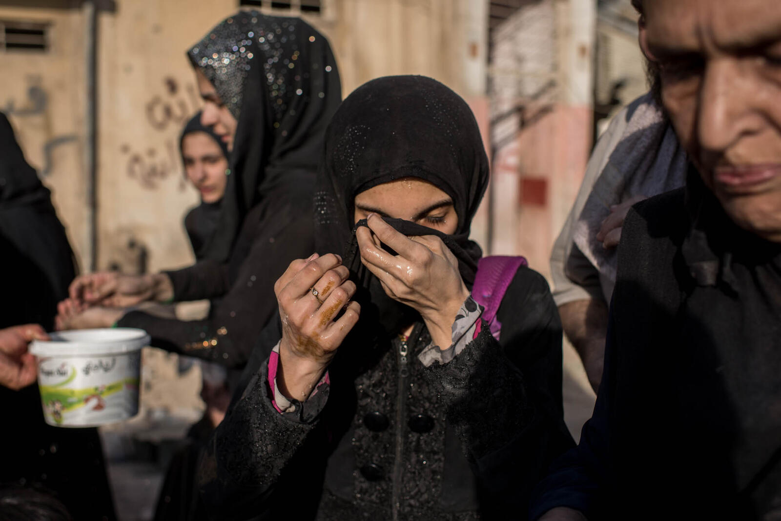 Au centre de réception d'Hammam Al Alil, Abou Taha sort de son portefeuille un sachet minuscule qui ne contient plus qu'une cuillérée de sucre en poudre. Pendant le siège, il en mélangeait quelques grains avec de l'eau pour garder ses enfants en vie.