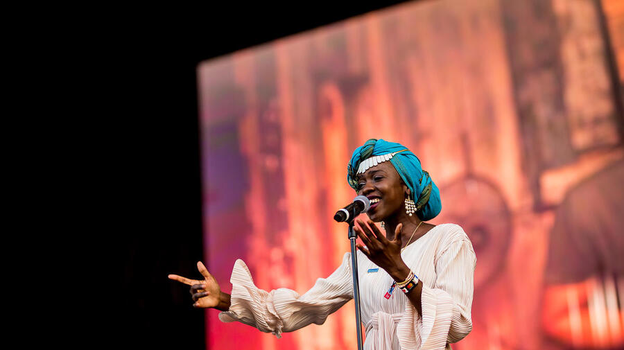 Emi Mahmoud, Ambassadrice de bonne volonté du HCR depuis l'année dernière, a déclaré qu'elle n'avait jamais joué devant une foule aussi nombreuse. « Quand on ne peut pas abattre physiquement des murs, il faut le faire émotionnellement », dit-elle. « J'espère que les gens rentreront chez eux en se sentant adoucis. »
