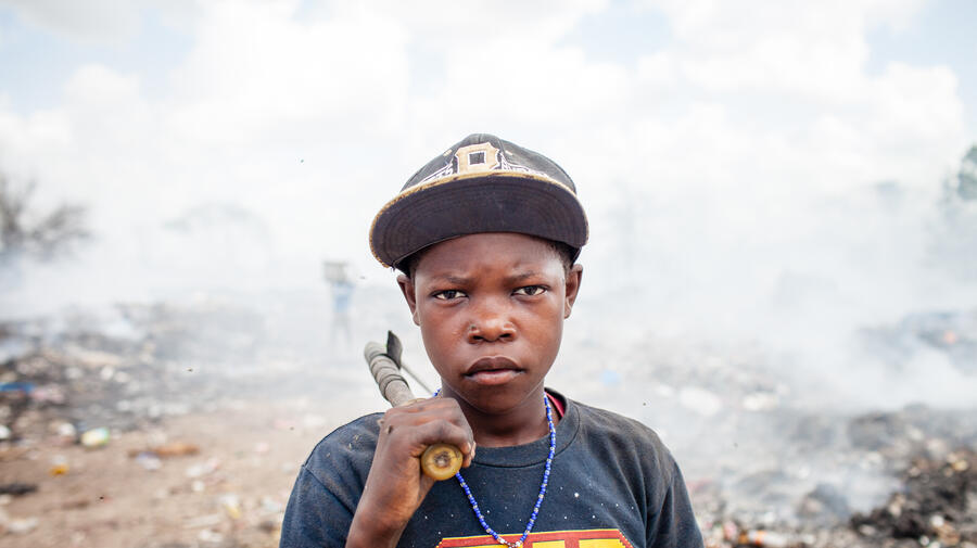 Joe Hullman, 13 ans, collecte des métaux au milieu des déchets dans une décharge municipale à San Pedro de Macoris en République dominicaine.