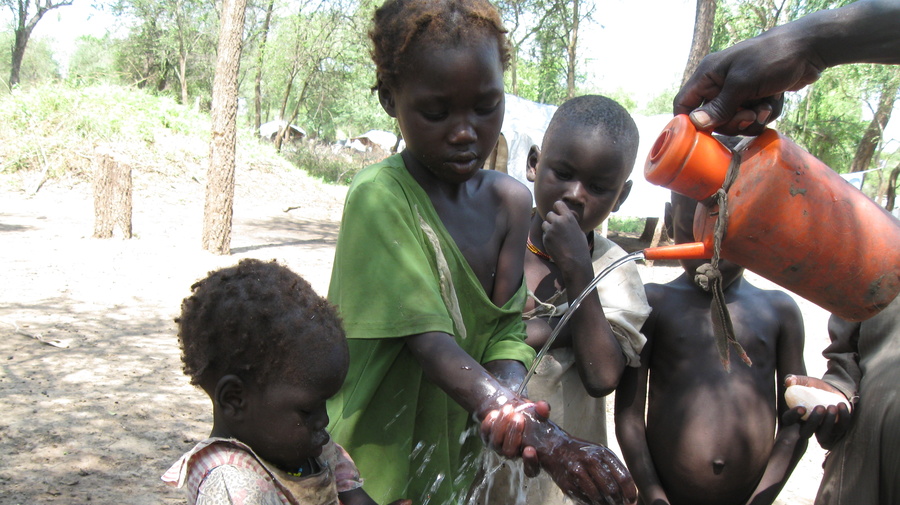 Des enfants se lavent les mains, au camp de Yusuf Batil, au Soudan du Sud. Ce réflexe pourrait un jour leur sauver la vie.