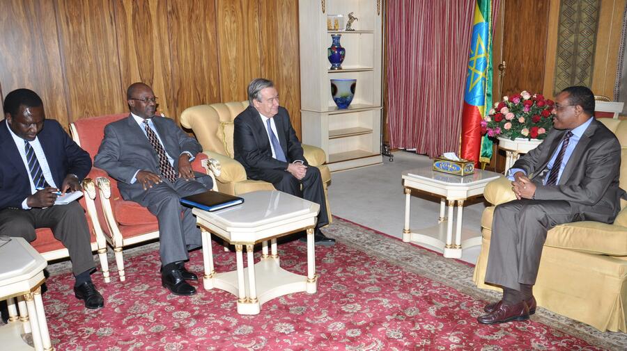 Lors d'une réunion vendredi avec António Guterres, le Premier Ministre éthiopien Hailemariam Desalegn a souligné l'opportunité de construire des liens « de population à population » entre l'Ethiopie et la Somalie ainsi que la nécessité d'investir d'urgence en Somalie pour y créer les infrastructures et les services essentiels. Parallèlement, a-t-il indiqué, l'Ethiopie aidera davantage de réfugiés somaliens à acquérir des compétences pour les aider à être productifs quand le moment viendra de rentrer dans leur pays.