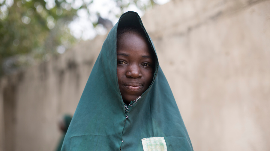 « Ça me fait de la peine de penser à mes parents, ils me manquent, » dit Hauwa. « Mais j'adore cette école et j'aime étudier. J'ai de très bonnes amies… M. Mustapha est vraiment quelqu'un de très bien. Il s'occupe de nous tous ici. Il nous nourrit, il nous donne des livres et nous permet d'étudier gratuitement. Je veux toujours étudier la médecine et je pense que j'ai une chance. »