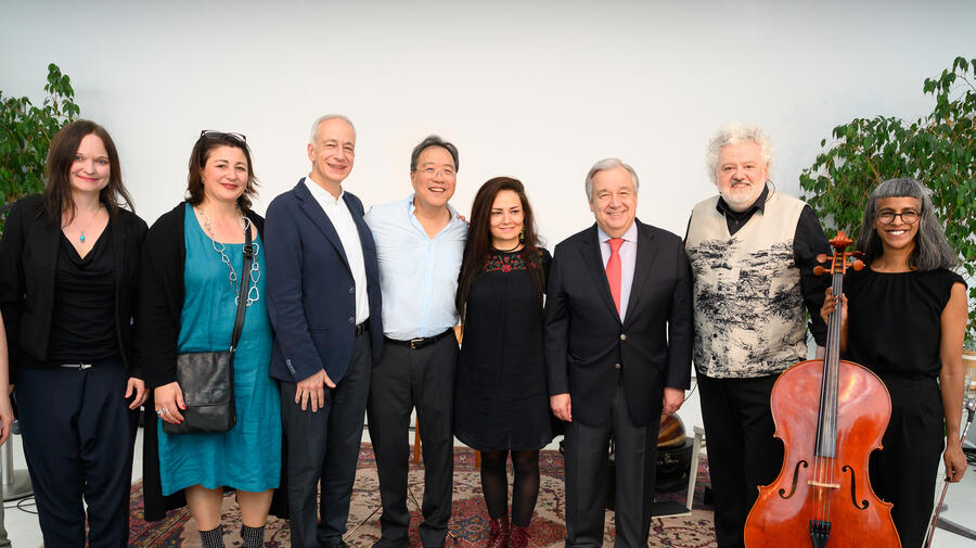 Le Secrétaire général de l'ONU, António Guterres, est passé lundi pour écouter un atelier de musique auquel participent des réfugiés et le célèbre violoncelliste Yo-Yo Ma à Vienne.