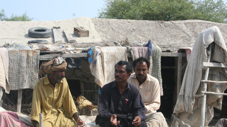 « Tout est détruit », a-t-il indiqué. « Mes cultures, ma maison, mon troupeau. Tout. » Son village de la province de Sindh, situé à environ 150 kilomètres de la ville portuaire de Karachi, commence seulement émerger des eaux de l'inondation. Il faut encore 40 minutes de trajet en bateau pour y arriver depuis la route la plus proche. Désormais, dit-il, il est inquiet pour la reconstruction. Il a entendu de rumeurs selon lesquelles des inondations pourraient survenir à nouveau.