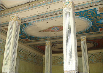 Des décorations aux couleurs vives et aux motifs orientaux couvrent les murs, les piliers et les plafonds. Elles avaient été commandées par son prédécesseur, un Azéri, mais Melik Babagulyan ne voit aucune raison de les remplacer par des décors typiquement arméniens.