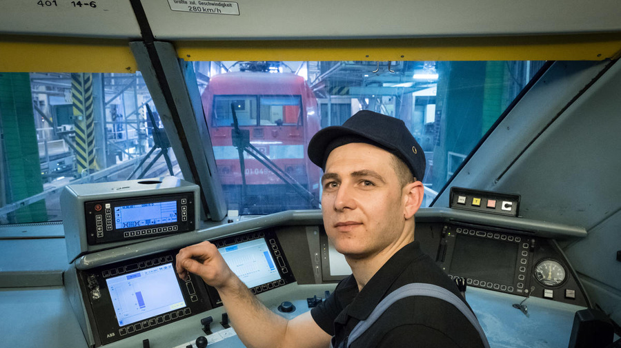 Mohammad, 28 ans, est formé à l'entretien de la flotte de trains interurbains à grande vitesse du réseau. Situé dans le nord de l'Allemagne, le dépôt de Hamburg-Eidelstedt où il travaille est le plus important du pays et peut assurer l'entretien simultané de huit trains longue distance.
