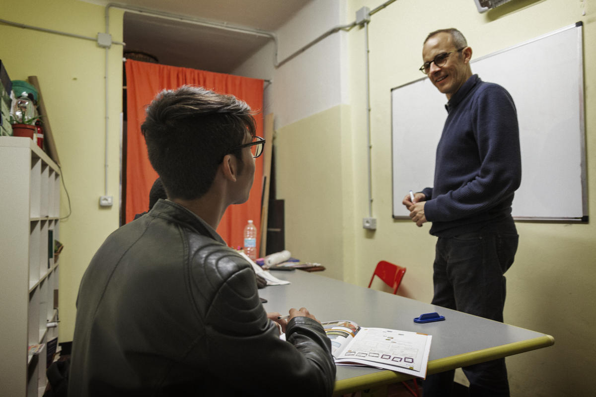 Farouk* étudie l'italien à Gênes, où il vivait avant de terminer le processus de regroupement familial.
