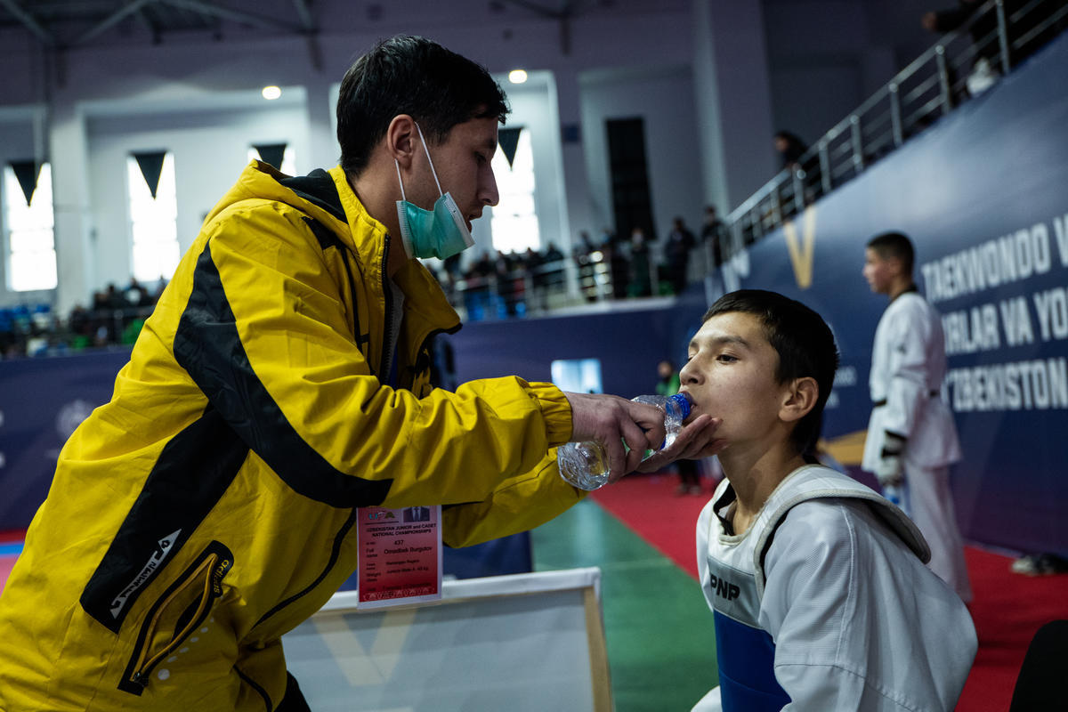 « Les sportifs ont toujours des sentiments patriotiques plus forts que les autres, car ils représentent le pays », affirme-t-il, assis dans le hall du bâtiment de la Fédération de taekwondo d'Ouzbékistan avant le combat de l'un de ses élèves.