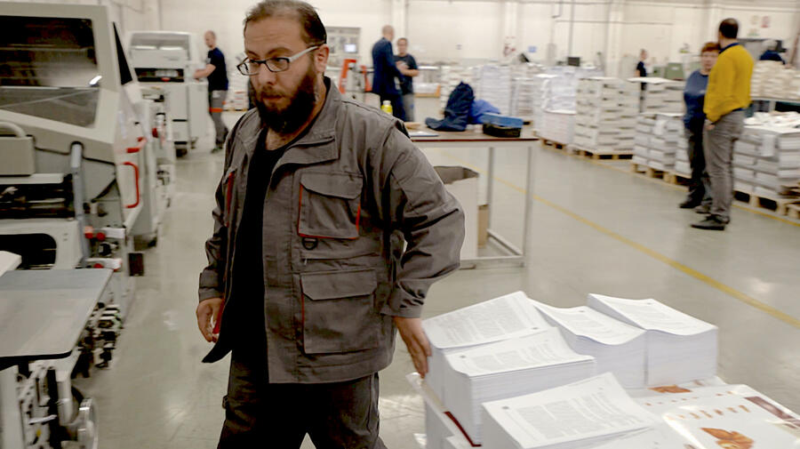Grafički Zavod Hrvatske (GZH) imprime des manuels scolaires. Cette imprimerie emploie des réfugiés comme Anass dans le cadre d'un accord avantageux pour tous qui pourrait constituer un modèle d'intégration sociale et une solution partielle à la pénurie de main-d'œuvre en Croatie.