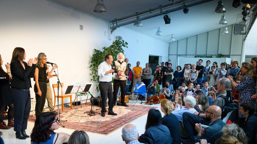 L'atelier avec Ma était consacré à la diversité et à l'inclusion sociale. Quatre-vingts participants, dont 10 réfugiés, ont appris et chanté « Lamma Bada Yatathana », la chanson en arabe que Basma répétait et qui date de l’époque médiévale en Espagne.