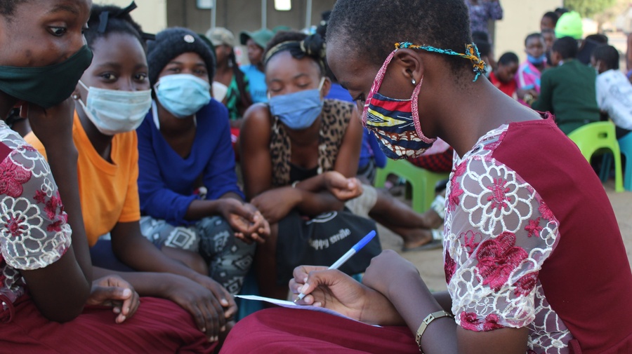 Childline Zimbabwe a organisé des campagnes de sensibilisation auprès de 600 enfants et 1000 adultes dans le camp de réfugiés de Tongogara. Ces campagnes visaient à expliciter les différents types d’exploitation et d’abus sexuels, ainsi que les moyens de signalement disponibles. Zimbabwe. © UNHCR/Andreea Campeanu