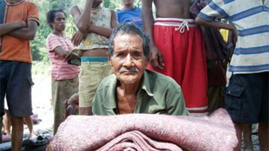 MOTO KIIK, Timor-Leste, July 5 (UNHCR) - Moniz Alves will be a bit warmer tonight after receiving a blanket from UNHCR at a makeshift camp near this village in foothills east of the Timor-Leste capital Dili, but the 81-year-old is still too scared to return home.