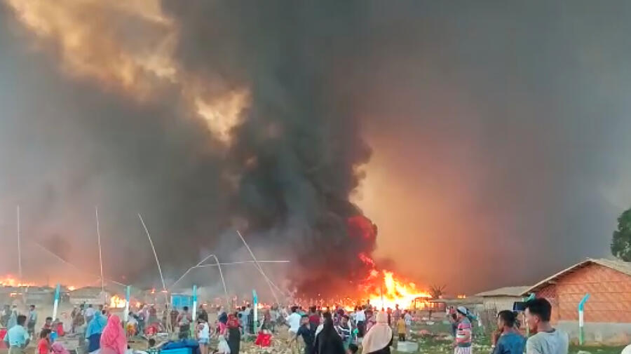 A fire is seen at a Balukhali refugee camp in Cox's Bazar, Bangladesh March 22, 2021.