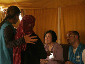 UNHCR's first aid convoy into northern Yemen complemented the assistance provided by the government and other organisations. Some 2,000 displaced Yemeni civilians scattered across two or three square kilometres in mountainous Mandaba area received tents, mattresses, blankets, plastic sheeting, jerry cans and hygiene items. Temperatures are low in this part of Yemen at this time of the year and most of the displaced are in need of shelter and blankets. People in Sa'ada province continue to live under extreme hardship as the conflict continues, supplies are running out and prices of commodities are increasing.