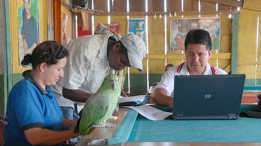 In a makeshift office improvised by setting up a laptop computer on a pool table, the team set to work under the watchful eye of the local parrot. Some 75 people were registered on that day, most of them after years in Ecuador - like 47-year-old Patricia, who arrived twelve years ago and has since had two more children whose births have not been officially registered in either country.
