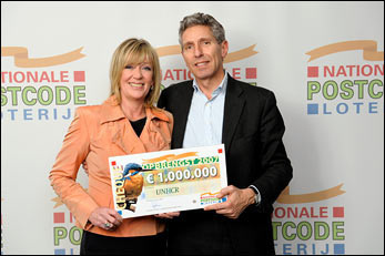 At a gala event in the town of De Bilt on Thursday evening, National Postcode Lottery Managing Director Ellen Damsma handed a symbolic cheque for 1 million euros to Nick Van Praag, UNHCR's director of external relations.