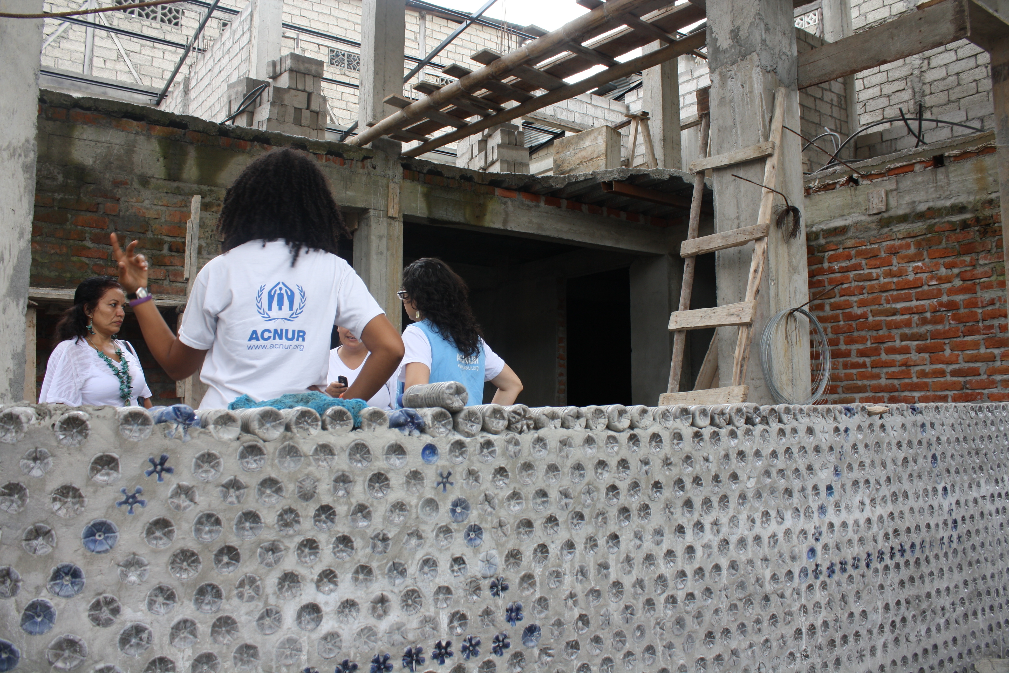 The UNHCR-funded computer centre in northern Ecuador was built using tens of thousands of recycled plastic bottles.