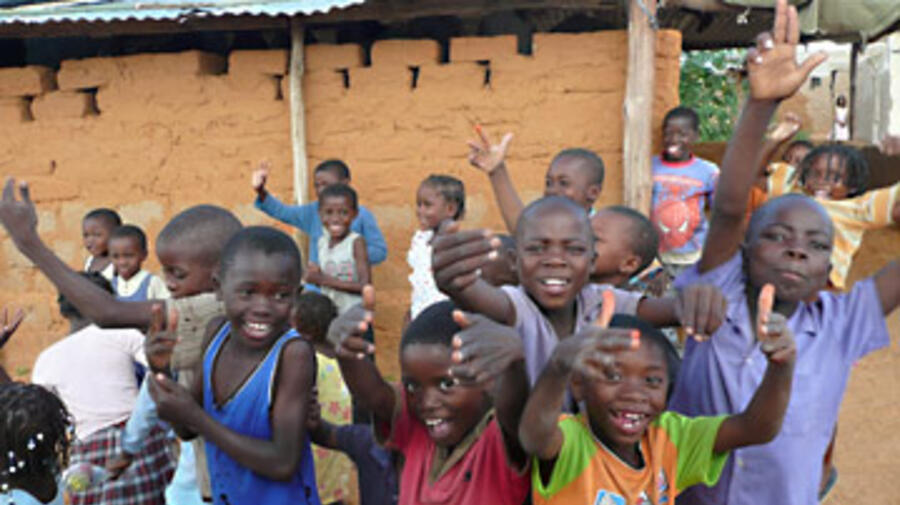 Refugee kids meet the UNHCR Council of Business leaders party at Osire camp in Namibia.