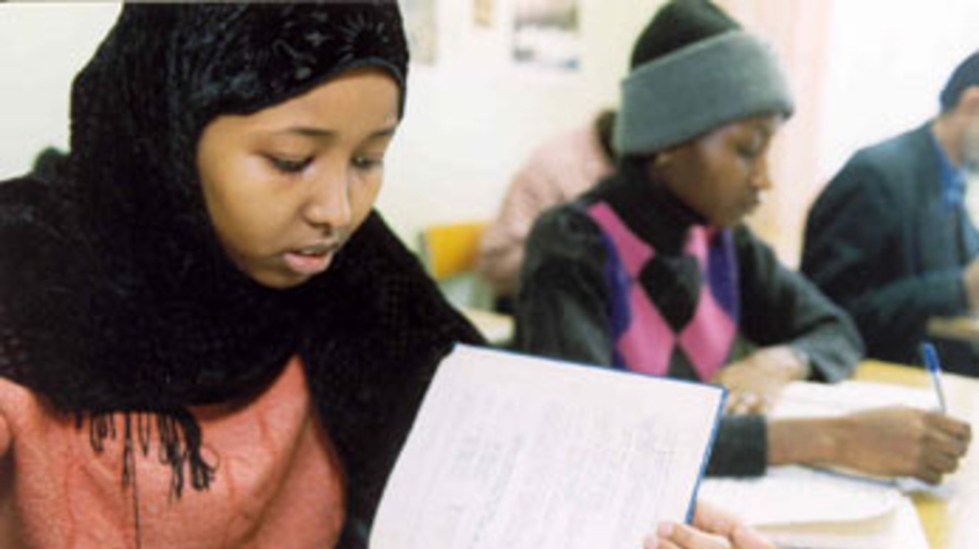 Asylum seekers taking Russian language lessons at the UNHCR-sponsored Perovo community centre in Moscow.