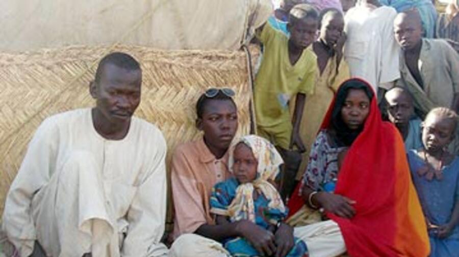 Ibrahim (centre, holding his niece) has just been reunited with his sister, (right with the red shawl), her husband (left) in Gaga refugee camp, eastern Chad. Ibrahim was separated from his family 2 years ago when his village was attacked in Darfur and he was forced to flee.