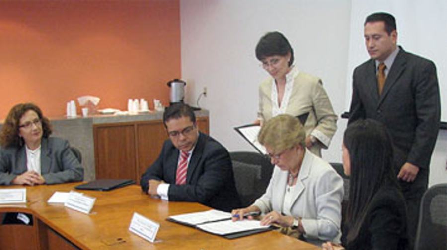 UNHCR's Mérida Morales-O'Donnell signs the Letter of Understanding aimed at facilitating the integration in the State of Mexico of urban refugees.