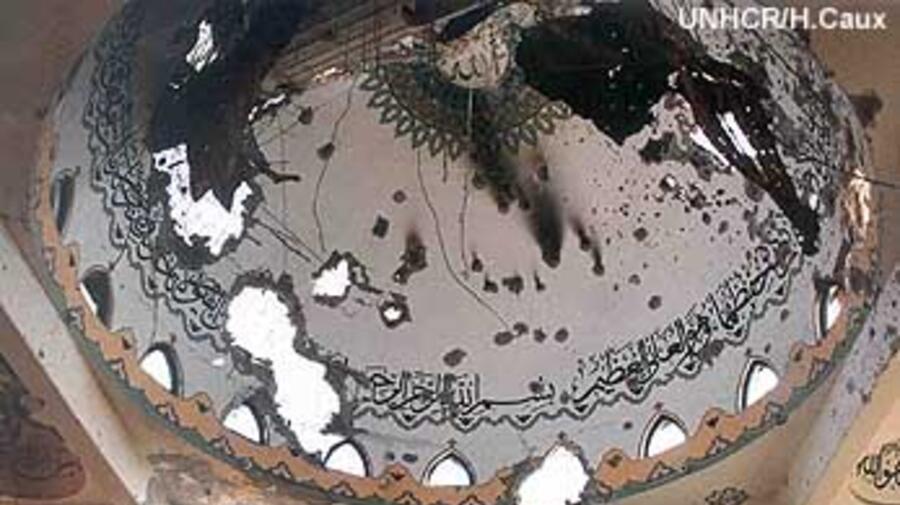 A badly damaged mosque in the village of Matejce, one of many villages in the former Yugoslav Republic of Macedonia where UNHCR regularly delivers assistance to returning refugees.