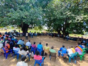 Raouf Mazou, meets with members of the Can – Coya farming collective in Magwi county, Eastern Equatoria State.